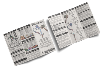 - A complete ruleset for playing Unworthy, including guidelines for character creation, task difficulty, combat, and enemy design